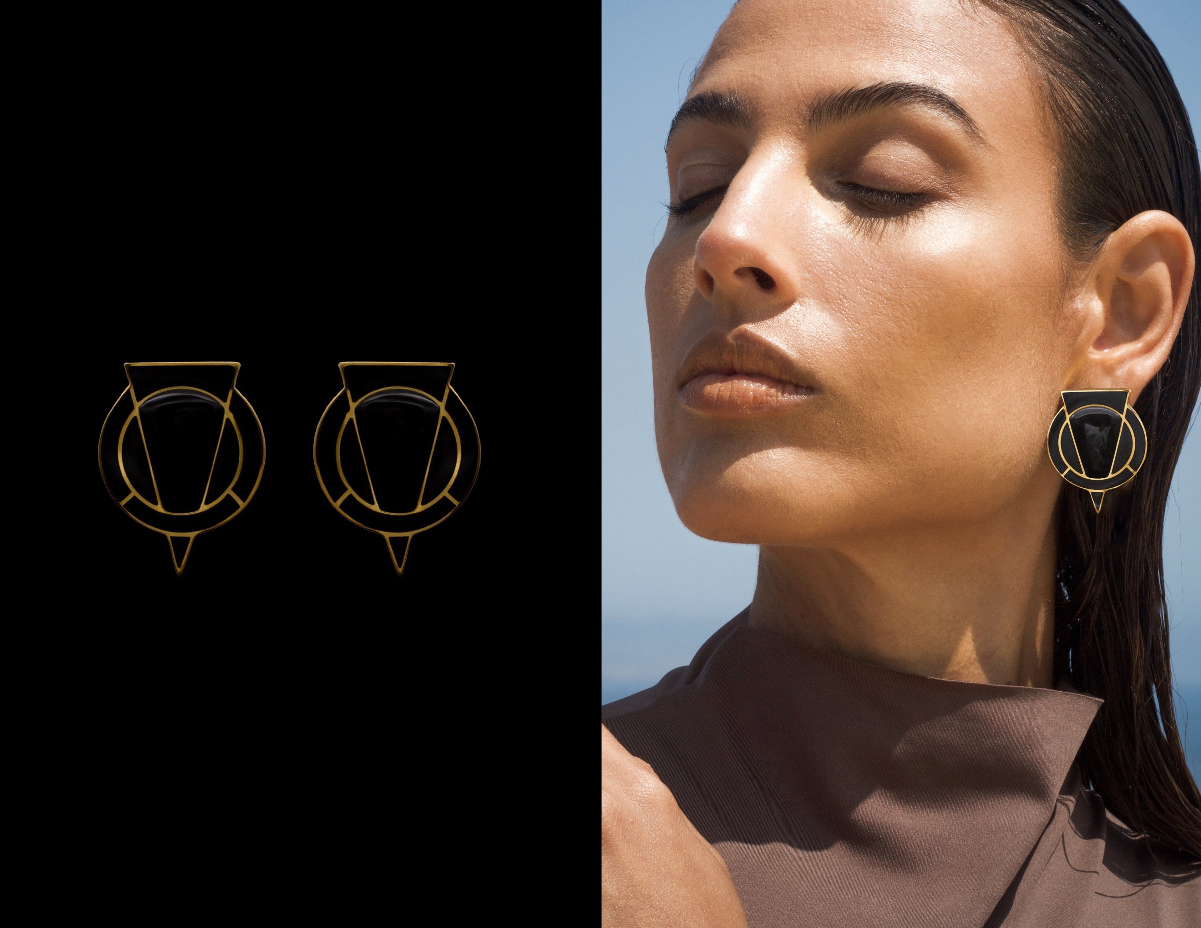 THE CAO COLLECTION ARE PIECES OF MINIMALIST GEOMETRIC SHAPES AND TRIANGULAR CUT STONES ARE COMPLEMENTED WITH SILVER CHAINS GIVING EACH PIECE A PURIST AND ELEGANT STYLE.