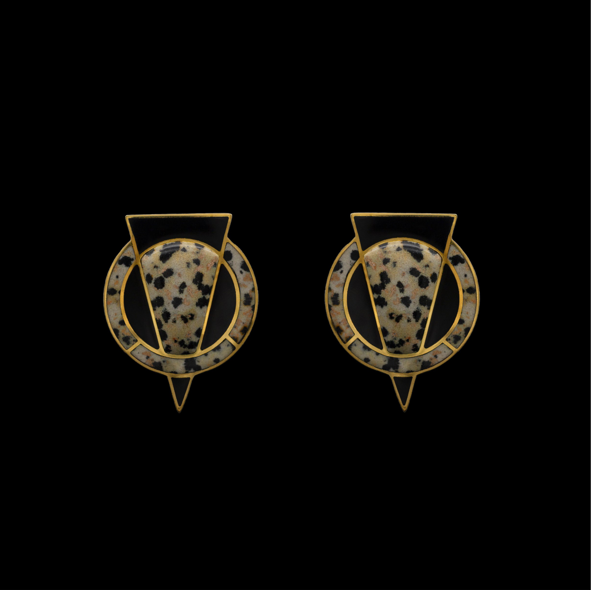schwarzer Onyx und Dalmatiner auf 24 kt vergoldetem Messing.